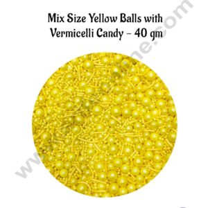 CAKE DECOR™ Sugar Candy – Mix Size Yellow Balls with Vermicelli Candy – 40 gm