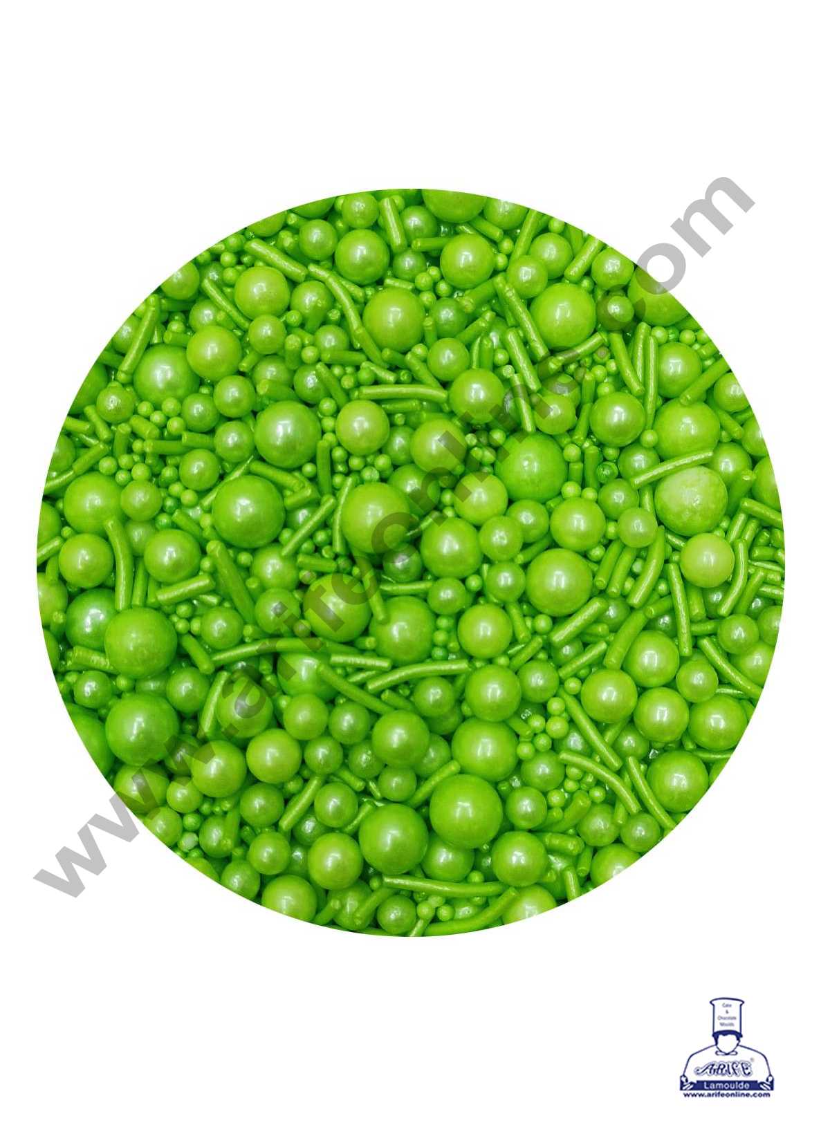 CAKE DECOR™ Sugar Candy – Mix Size Light Green Balls with Vermicelli Candy – 100 gm
